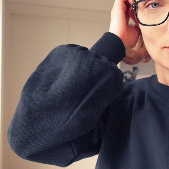 Czarna bluza z bufiastymi rękawami – minimalistyczna, ale z detalem, który robi całą robotę.