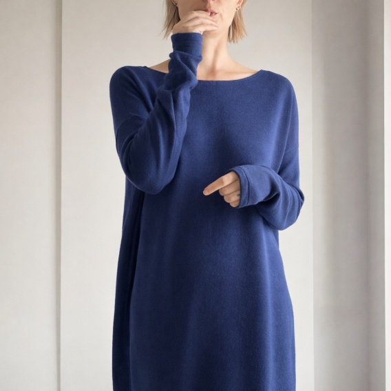 Długa ciemnoniebieska sukienka swetrowa ciemnoniebieska.