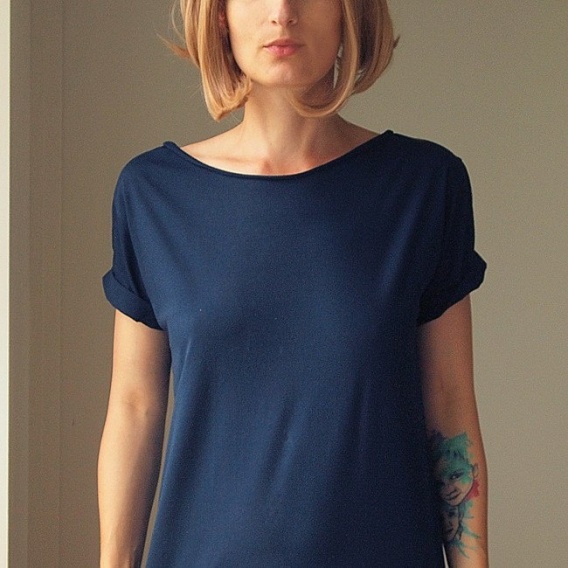 Granatowa koszulka damska oversize bez nadruku to głęboka, klasyczna baza, która zastępuje czerń, ale daje lżejszy efekt.