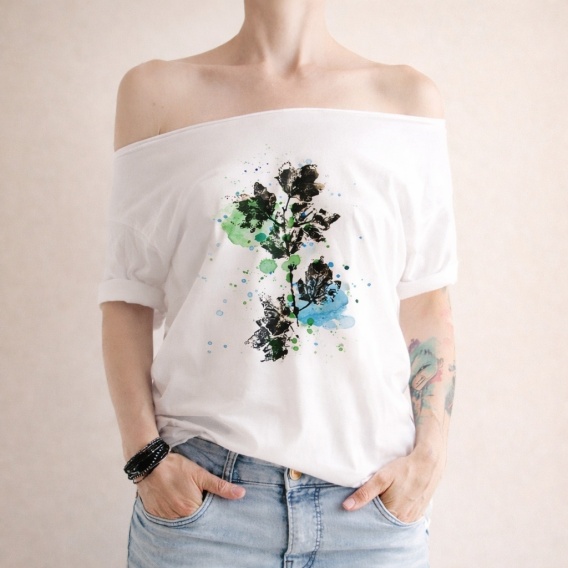 Nowość! Unikalna seria nadruków inspirowanych naturą – tworzona przy użyciu roślin, czarnej farby, wałków malarskich i kolorowych akwareli. Każdy projekt jest wyjątkowy i wyróżnia się z tłumu.