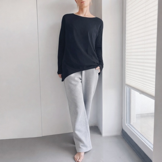 Modelka na zdjęciach ma na sobie rozmiar XL, klasycznie nosi rozmiar M. Bluzka na zdjęciu to Wąski rękaw bluzka czarna, dostępna w naszej ofercie.