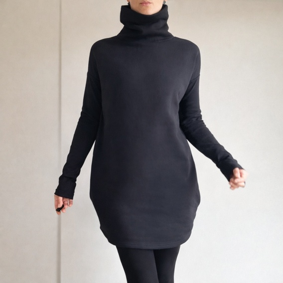 Ciepła, mięciutka sukienka z grubej czarnej dresówki, z takim golfem, że my się zakochałyśmy.