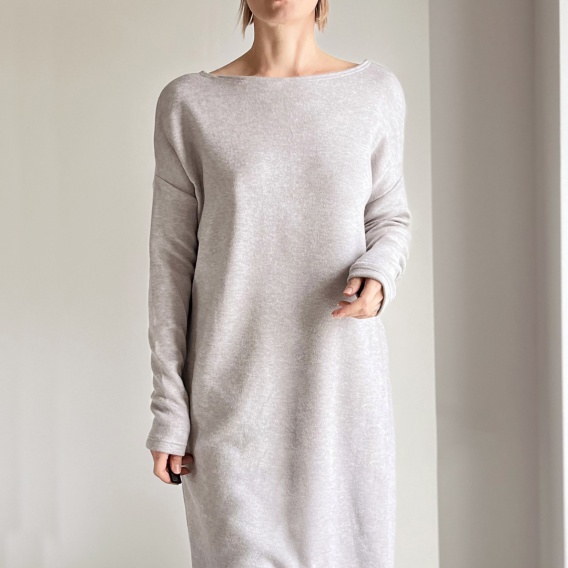 Swetrowa szara długa sukienka.