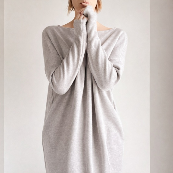 Uszyta z grubej, mięsistej dzianiny, która przyjemnie otula i rozgrzewa – miękka, ciepła, idealna do noszenia przez cały dzień.