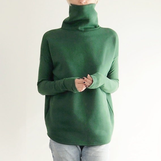Nasz klasyk w wersji z golfem. Gruba dresówka, długie wąskie rękawy, podwójna warstwa golfu.