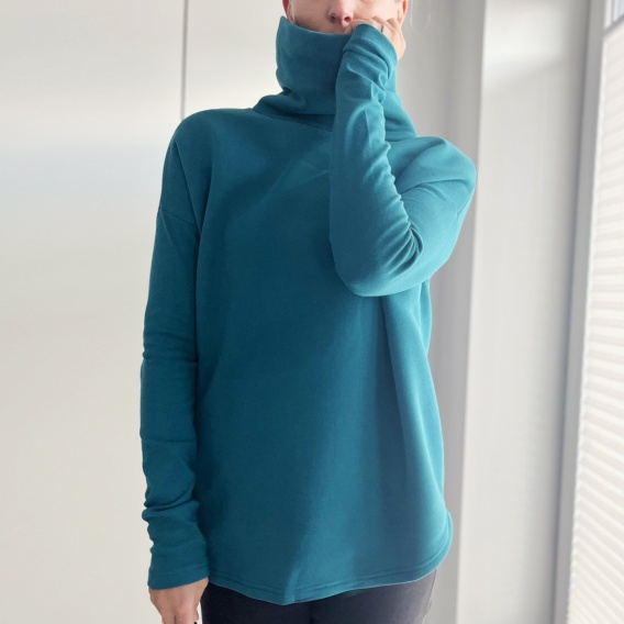 To nasz klasyk w nowej odsłonie: z wysokim, miękkim golfem, który otula i trzyma formę dzięki podwójnej warstwie materiału.