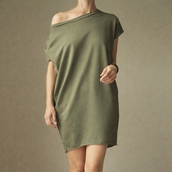 Sukienka dresowa Oversize Oliwka Bez rękawów Kieszenie